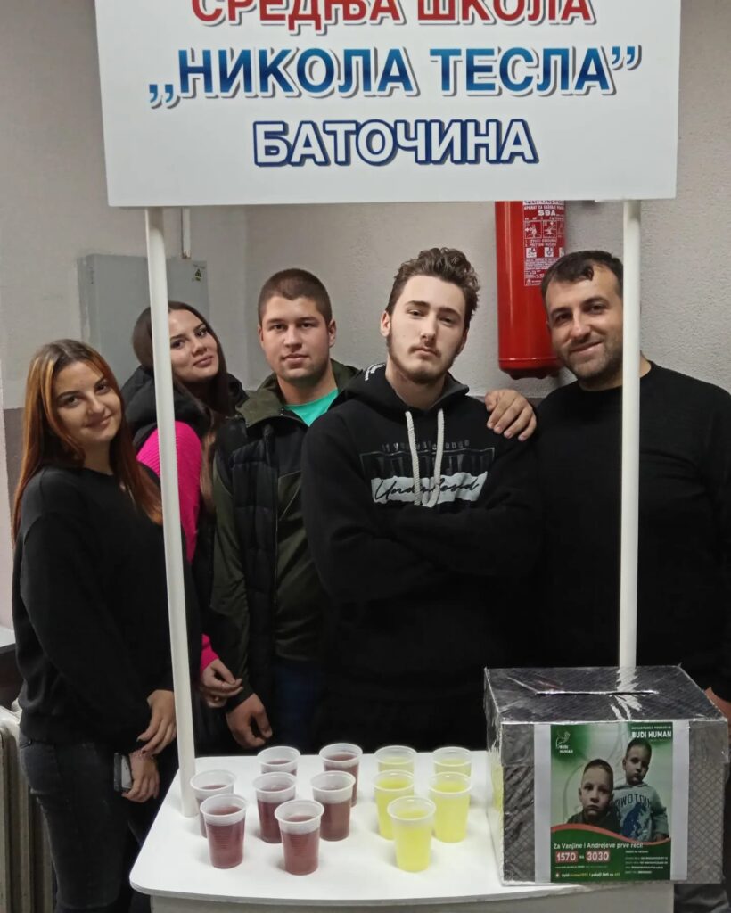 Ученички парламент наше школе подржао је хуманитарну акцију „За Вањине и Андрејеве прве речи“. Парламент је дошао на идеју да продајом лимунаде и чаја прикупи новчана средства. Акцији су се у великом броју одазвали ученици и професори, а сакупљени новац је уплаћен на рачун хуманитарне организације „Буди хуман“ за дечаке из Лапова.