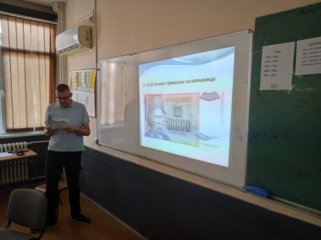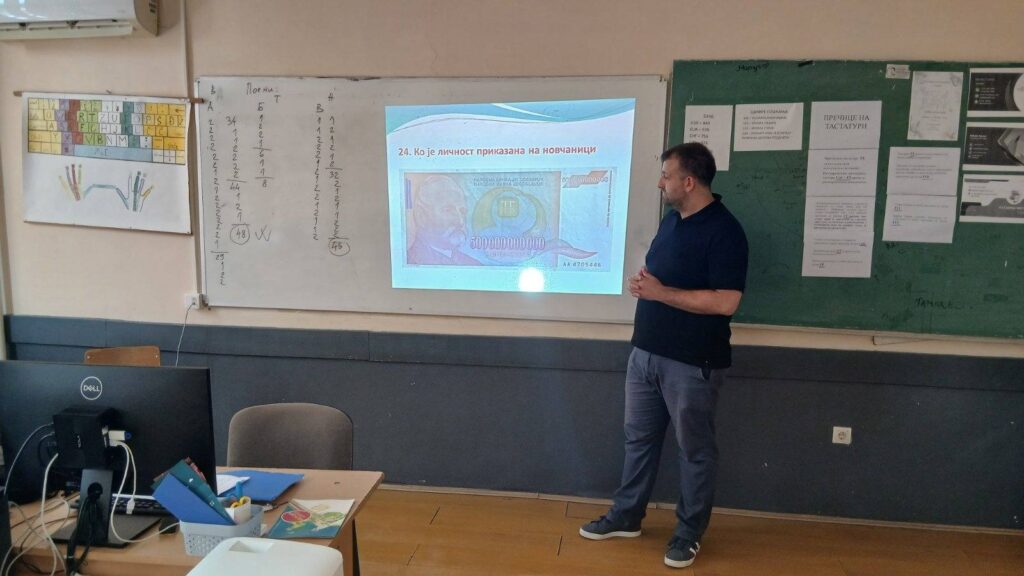 У среду 10.06.2025. професори Милош Голубовић и Марко Станојевић са ученицима одељења 3/1 организовали су квиз „Знамените личности на динарским новчаницама“. Циљ квиза представља подизање нивоа знања о значају одабраних личности за наше наслеђе, као и буђење интересовања за даље индивидуално истраживање о њима и идентификацију са вредностима које они оличавају.
