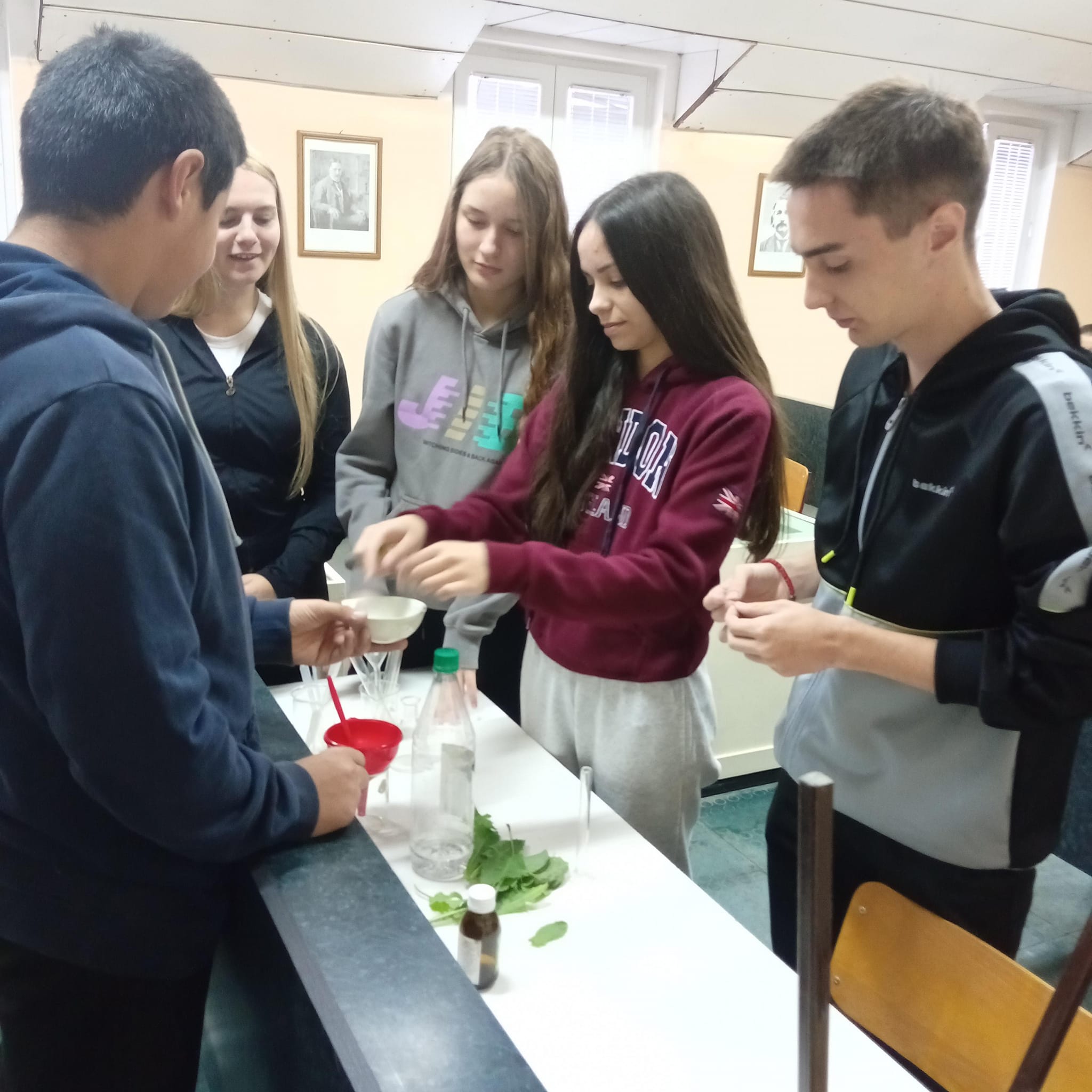 У понедељак 07.10.2024.год. професор биологије Александра Илић Васић је у одељењу 1-1 одржала угледни час ,,Изоловање пигмената из хлоропласта листа“. Циљ овог часа је био