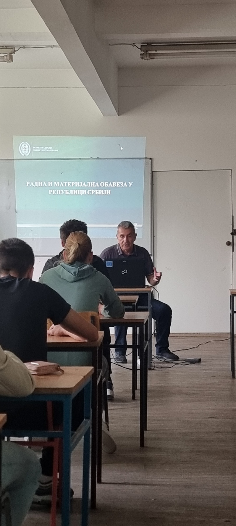 У среду 25.септембра, Јован Ђорђевић из Војног одсека је ученицима заврших разреда одржао промоцију војничког позива и реализовао први део обуке из Система одбране земље.