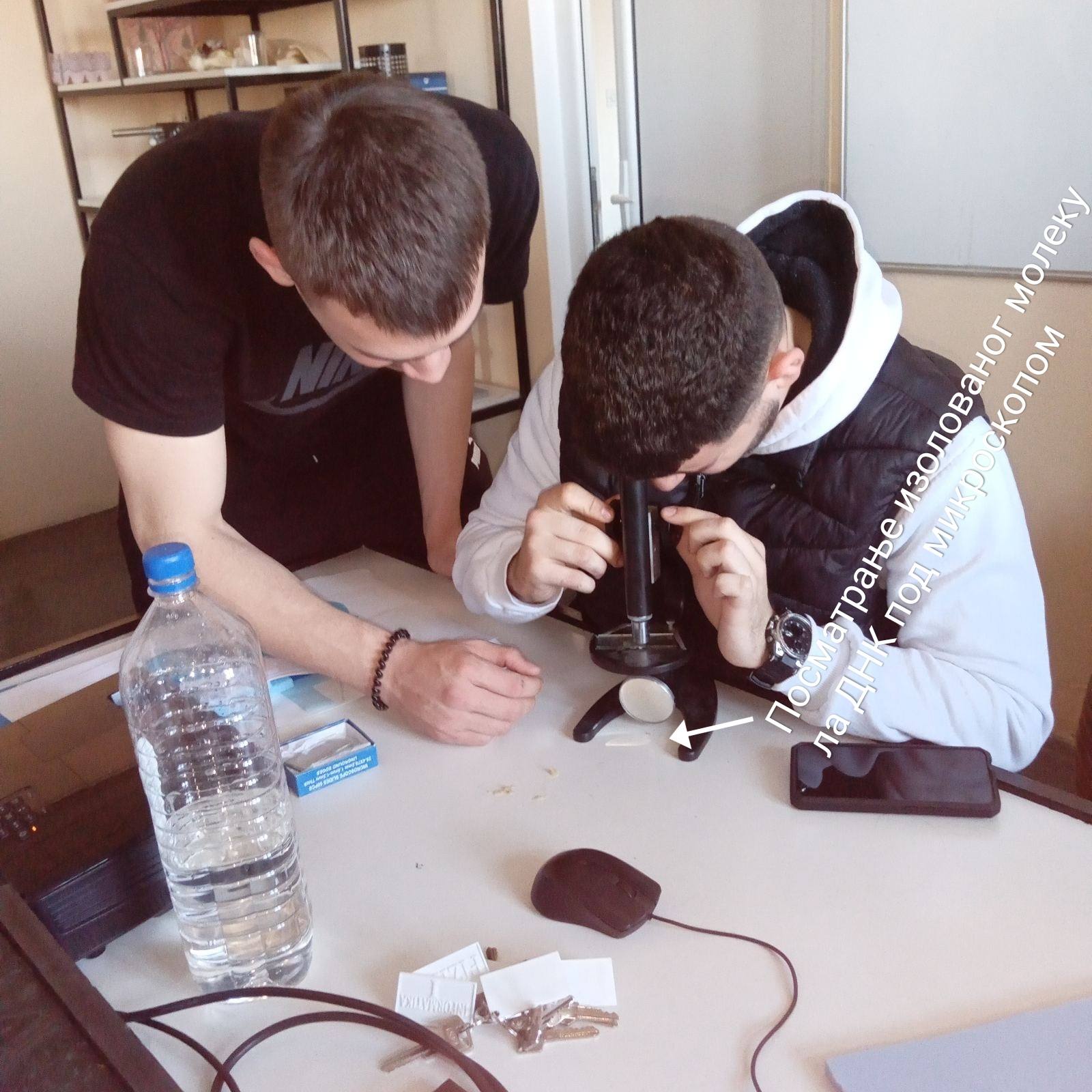 Ученици одељења 2-1 са професорком биологије Александром Илић Васић су показали у неколико једноставних корака како можемо да ,,ослободимо“ много молекула ДНК из биљног материјала